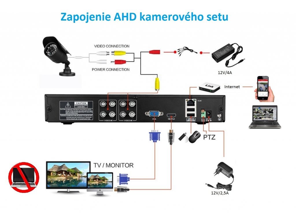 - Hybridný DVR box podporujúci AHD aj IP kamery